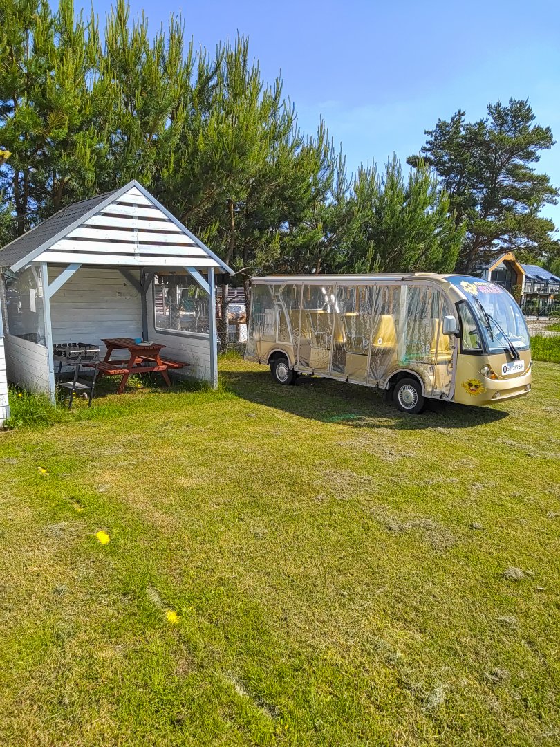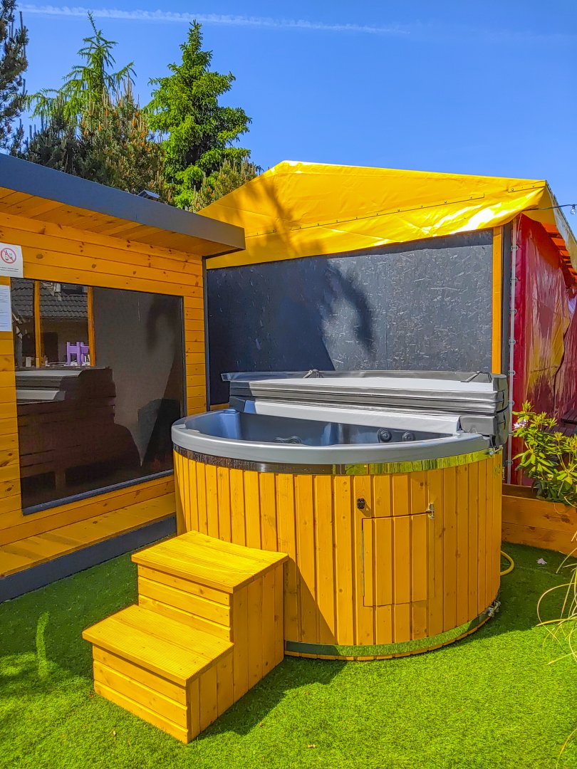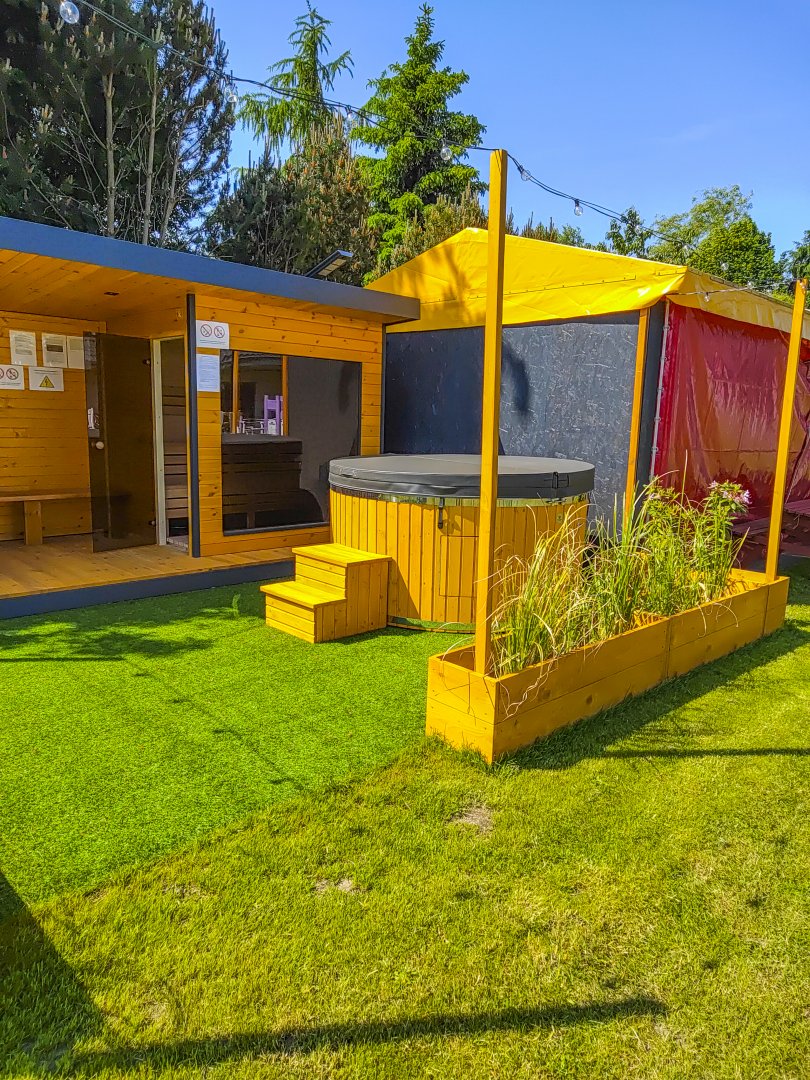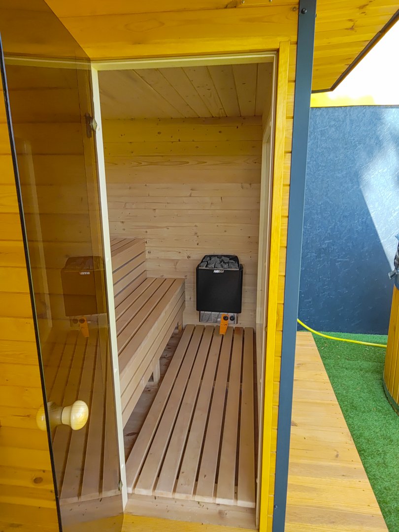 Na parterze każdego z nich znajduje się salon w którym jest rozkładana sofa dla dwóch osób oraz telewizor, aneks kuchenny w który wyposażyliśmy w płytę grzewczą, lodówkę, czajnik, kuchenkę mikrofalową oraz akcesoria kuchenne oraz łazienka z kabiną prysznicową. Z salonu jest wyjście na taras na którym znajduje się zestaw wypoczynkowy. Na piętrze, znajduje się sypialnia z łóżkami dla 4 osób.