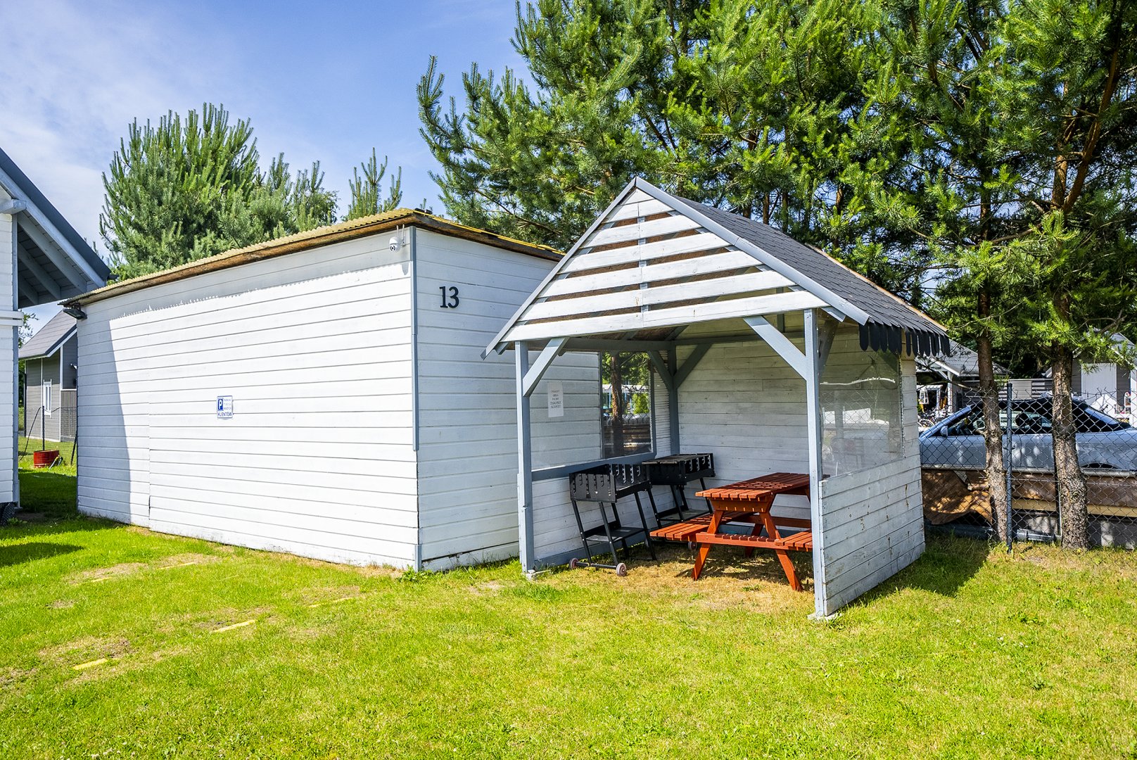 Na parterze każdego z nich znajduje się salon w którym jest rozkładana sofa dla dwóch osób oraz telewizor, aneks kuchenny w który wyposażyliśmy w płytę grzewczą, lodówkę, czajnik, kuchenkę mikrofalową oraz akcesoria kuchenne oraz łazienka z kabiną prysznicową. Z salonu jest wyjście na taras na którym znajduje się zestaw wypoczynkowy. Na piętrze, znajduje się sypialnia z łóżkami dla 4 osób.